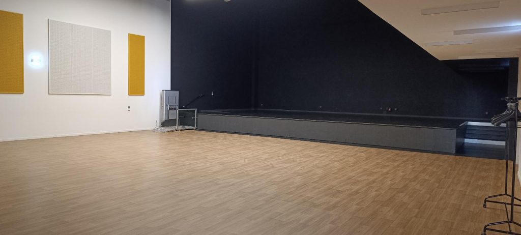 La grande salle polyvalente du rez-de-chaussée peut accueillir jusqu’à 280 personnes assises. Modulable et spacieuse, elle est idéale pour tout type de manifestations : mariages, lotos, expositions, spectacles ou concerts. Elle dispose d’une estrade, de gradins de 80 places assises et de la possibilité d’ajouter des chaises. Un espace de convivialité à l’entrée peut également être utilisé comme billetterie, espace de restauration ou buvette. Bien que la salle ne dispose pas de cuisine, elle peut accueillir sans difficulté un service traiteur.