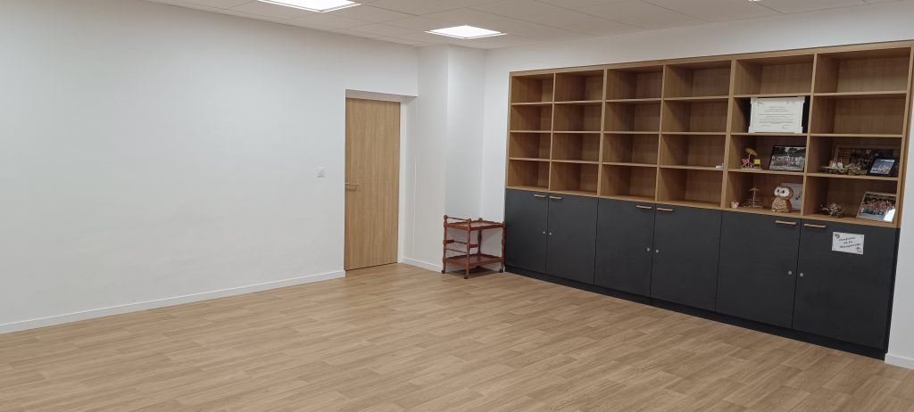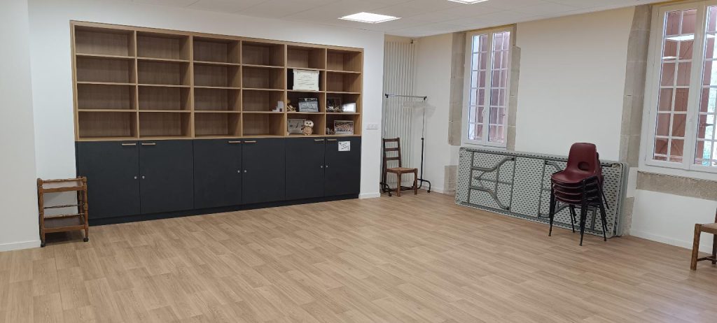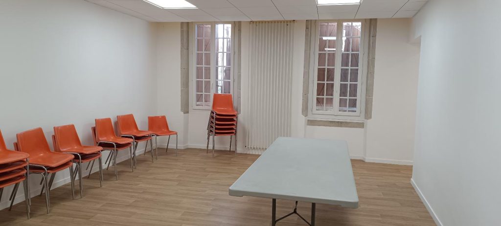 Cette salle, équipée de sanitaires et d’une kitchenette, est idéale pour organiser un anniversaire, une réunion ou un événement associatif.